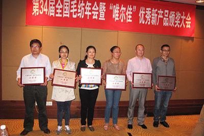 公司產(chǎn)品在第34屆全國(guó)毛紡年會(huì)暨“維爾佳”優(yōu)秀新產(chǎn)品頒獎(jiǎng)大會(huì)上獲獎(jiǎng)