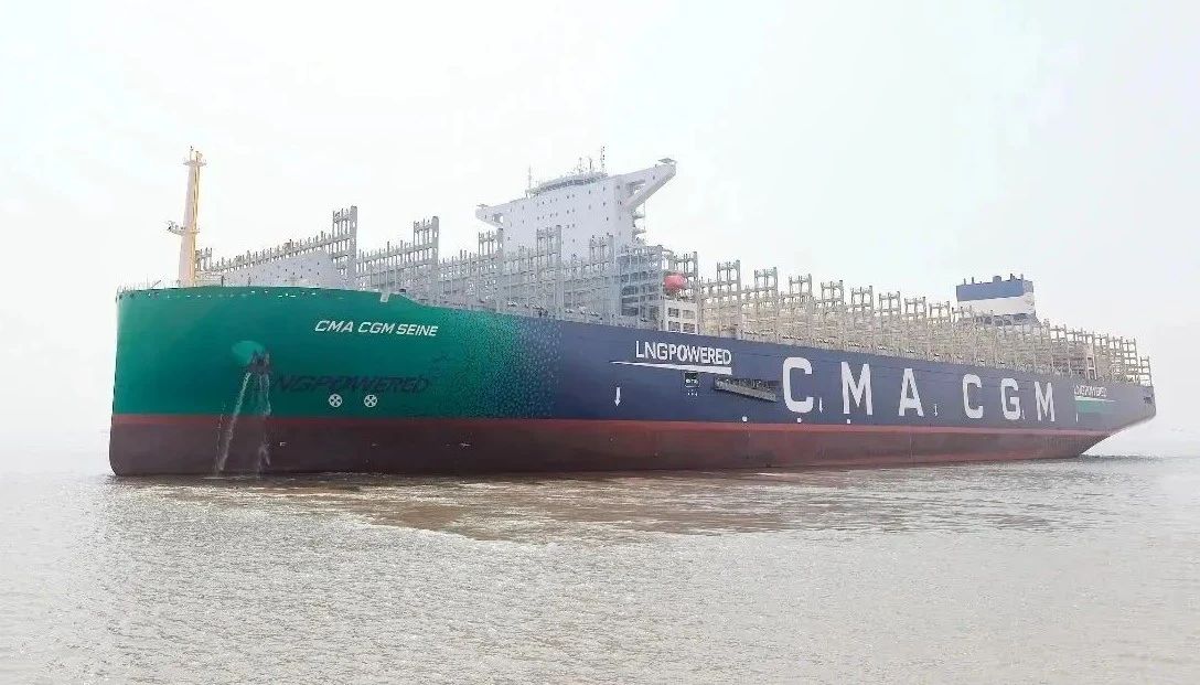 該船是法國達(dá)飛集團(tuán)在滬東中華訂造的4艘24000TEU級(jí)雙燃料動(dòng)力集裝箱船的首制船,也是滬東中華繼2020年9月完工交付的全球首創(chuàng)23000TEU雙燃料動(dòng)力集裝箱船的升級(jí)優(yōu)化型集裝箱船。該船總長399米,可一次裝下23872個(gè)集裝箱,包括2200個(gè)標(biāo)準(zhǔn)冷藏集裝箱,最大堆箱層數(shù)達(dá)24層,相當(dāng)于22層樓高度,是新一代海上“綠巨人”和“帶貨王”。